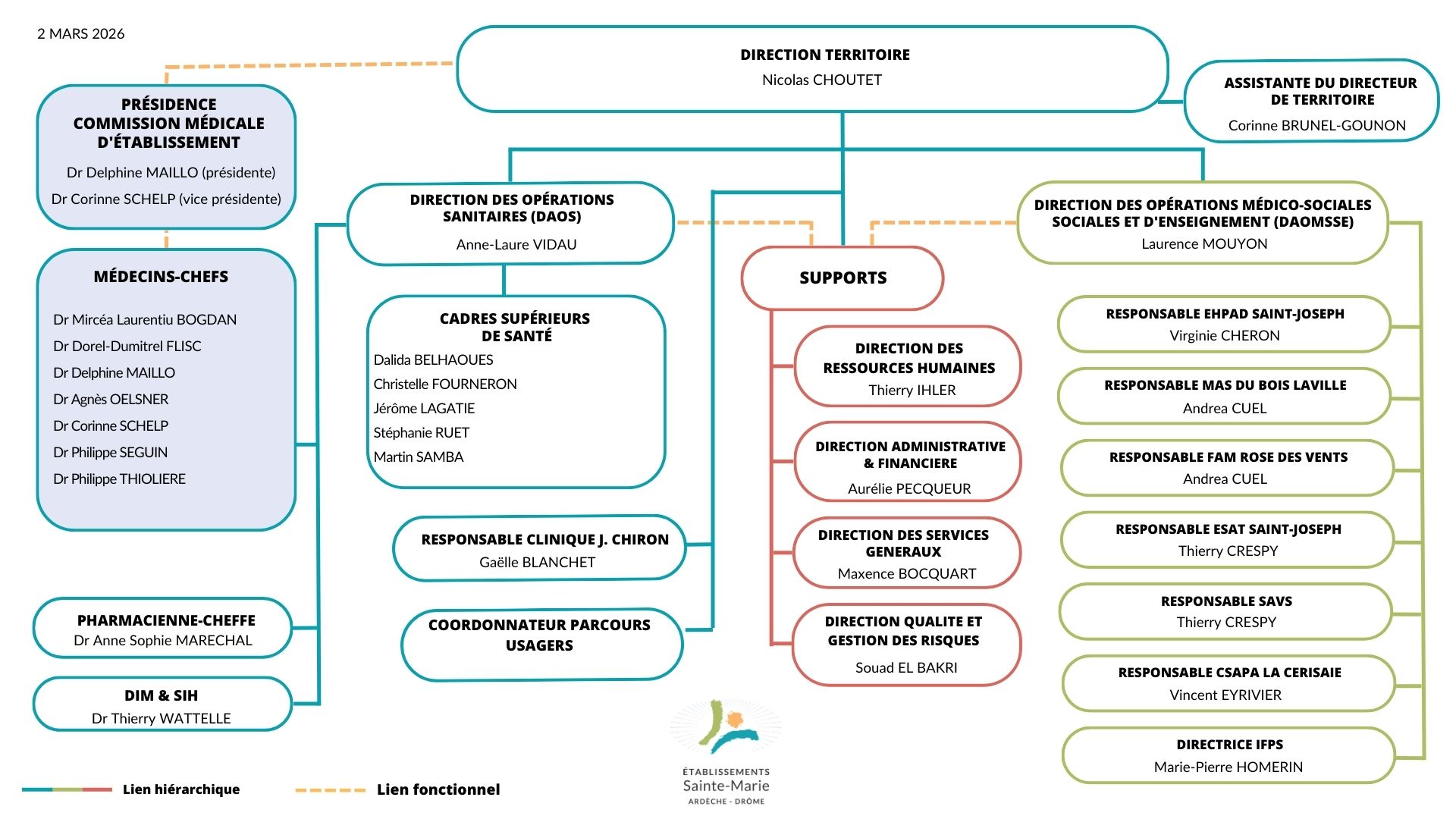 Organigramme des établissements Sainte-Marie Ardèche -Drôme